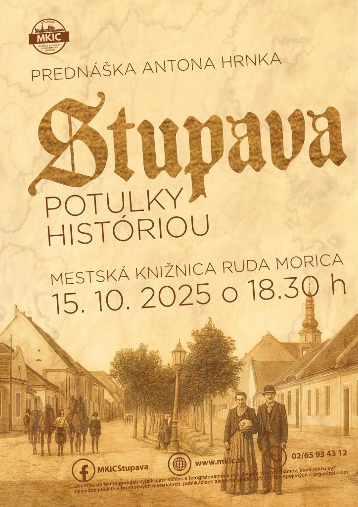 V stredu 15.10.2025 o 18:30 h vás pozývame na besedu o histórii Stupavy s historikom Antonom Hrnkom, ktorý prezradí návštevníkom mnohé zaujímavosti z časti Stupavy Mást a okolia.