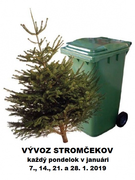 Spoločnosť VPS - Stupava oznamuje občanom, že vianočné stromčeky z lokalít, ktoré sa nestihli obslúžiť, budú mať vývoz v ďalšom pôvodnom termíne, a to v pondelok, 14. januára 2019.