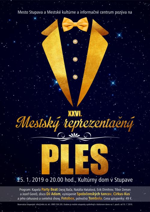 Mesto Stupava a Mestské kultúrne a informačné centrum Vás pozývajú na XXVI. Reprezentačný ples, ktorý sa uskutoční dňa 25. januára 2019 o 20.00 hod. v Kultúrnom dome v Stupave.