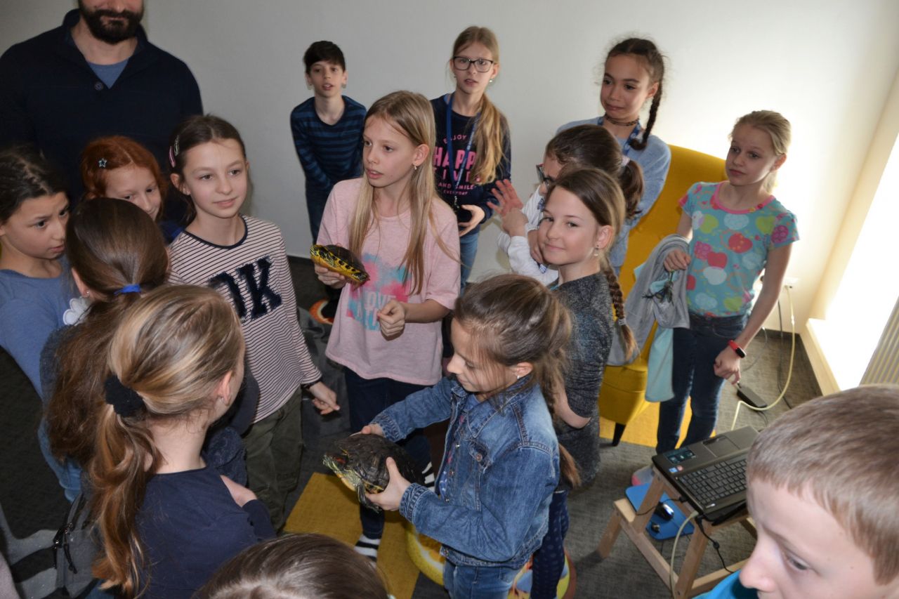 Prednášky boli organizované pre dve triedy – piatakov a siedmakov ZŠ kpt. Jána Nálepku. Juraj žiakov potešil aj prítomnosťou živého zvieratka – korytnačky.