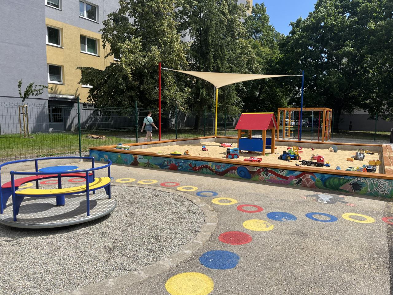 tieniaca plachta nad časťou pieskoviska,