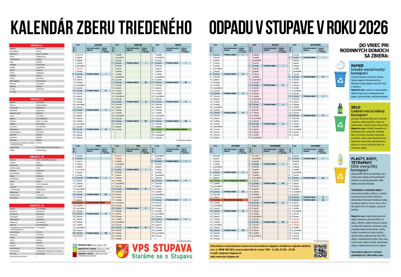 Kalendár zberu triedeného odpadu v Stupave v roku 2026 nájdete v pdf tu,