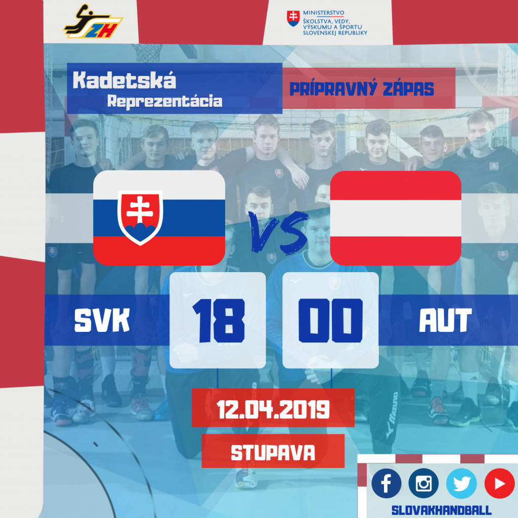 Slovenský zväz hádzanej vás pozýva na prípravný medzištátny zápas Slovensko - Rakúsko mužov do 18 rokov v hádzanej. Zápas sa uskutoční dňa 12. apríla 2019 o 18.00 hod. v športovej hale pri ZŠ v Stupave.