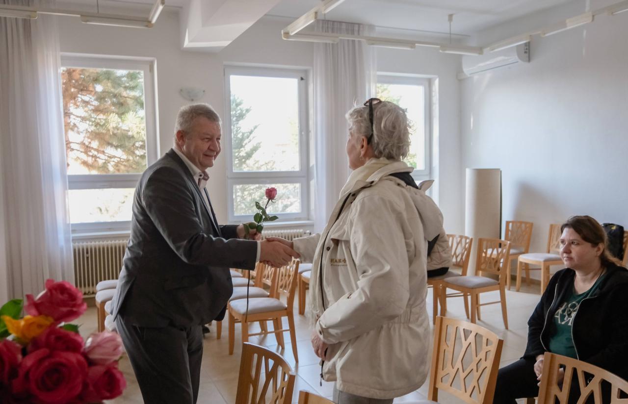 V piatok podvečer sa primátor prihovoril prítomným dámam aj počas spoločného stretnutia pri príležitosti MDŽ, ktoré bolo spojené s premietaním filmu Cukrkandl a otvorením výstavy OZ ARTE.VIA. Vo svojom príhovore pripomenul, prečo Medzinárodný deň žien vznikol, a prítomným ženám poprial najmä pevné zdravie, veľa životného optimizmu a aby mali vo svojom okolí vždy ľudí, ktorým na nich záleží. Spolu s poslancom mestského zastupiteľstva Marekom Lackom následne prítomným dámam osobne zagratulovali a každú z nich obdarovali symbolickou ružou.