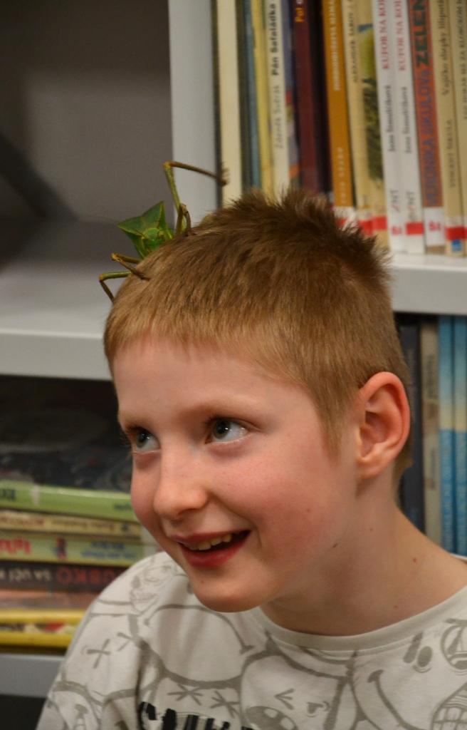 V závere stretnutia si vĺčatá mohli do rúk chytiť aj živé zvieratká - pytóna a kobylku obrovskú.