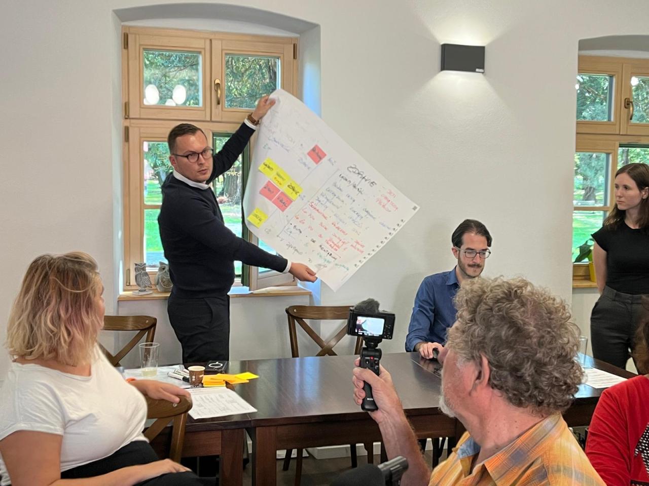 V úvode programu predstavili Ing. Ján Lacko a Ján Daniš zo spoločnosti WSB Invest, j. s. a. zámer výstavby veterného parku. Následne prebehla facilitovaná diskusia v menších skupinách, kde účastníci pomenovali svoje postoje, otázky a obavy. Tie zozbierali a zhrnuli facilitátori z úradu pre rozvoj občianskej spoločnosti. Najčastejšie témy potom zazneli v pléne, pričom na ne reagovali prítomní hostia – primátor mesta Peter Novisedlák, zástupca investora, ako aj odborní pracovníci z Úradu podpredsedu vlády pre plán obnovy.