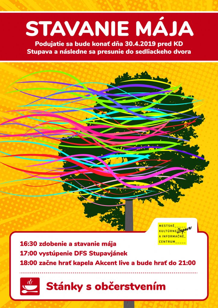 Mestské kultúrne a informačné centrum v Stupave oznamuje verejnosti, že kvôli nepriaznivému počasiu sa podujatie Stavanie mája prekladá z 30.4.2019 na 2.5.2019.