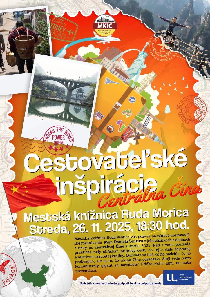 Mestská knižnica Ruda Morica vás pozýva na pútavé cestovateľské rozprávanie Mgr. Daniela Čentíka o jeho zážitkoch a dojmoch z cesty po centrálnej Číne z apríla 2025. Rád sa vami podelí o praktické rady ohľadom prípravy cesty do tejto stále tajomnej a relatívne uzavretej krajiny.
